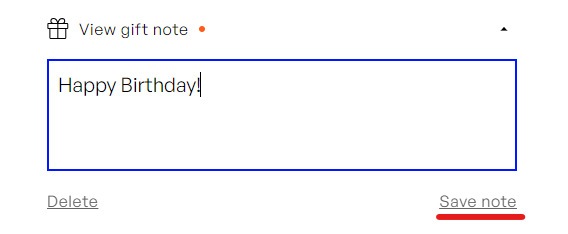 - You can then type your gift message in the text field. Once you have completed typing the git message, press Save at the bottom of the text field: