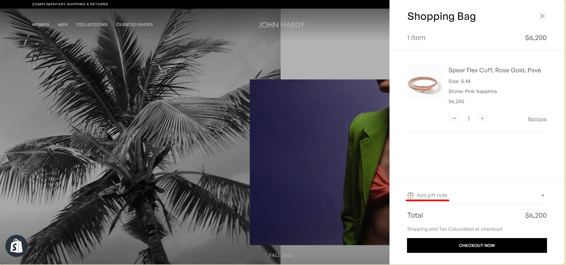 Now your order will have a gift note included! If you forgot to add a gift note during checkout, you can email clientcare@johnhardy.com with your order number and the message you would like to add, and our team can attempt to have it added if the package has not already shipped.